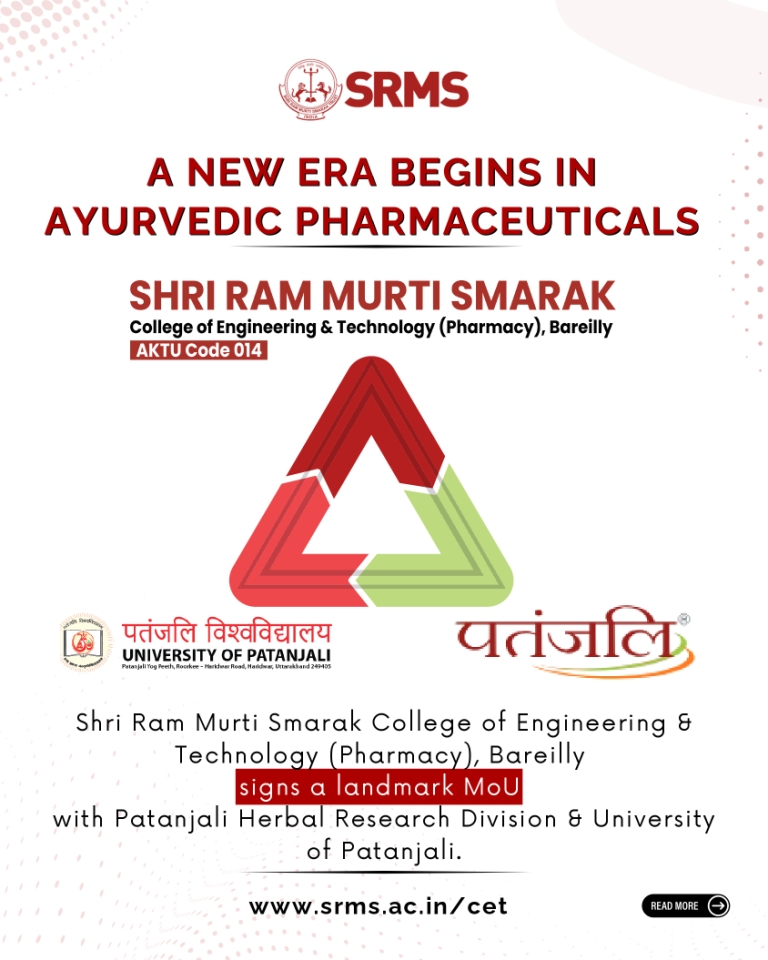 In a landmark move, SRMS College of Engineering & Technology (Pharmacy), Bareilly has signed an MoU with Patanjali Herbal Research