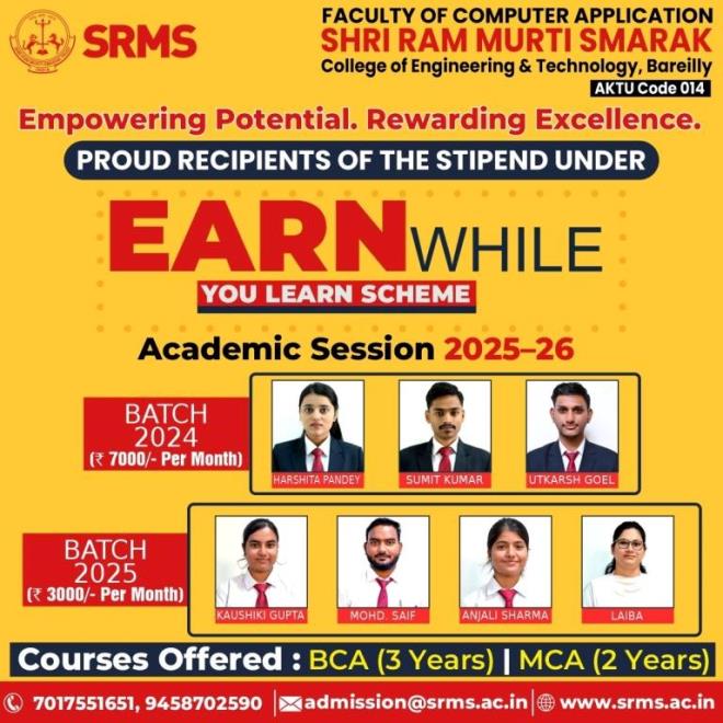 At SRMS Institutions, students don’t just study; they grow, create, and earn while learning. The Earn While You Learn Scheme
