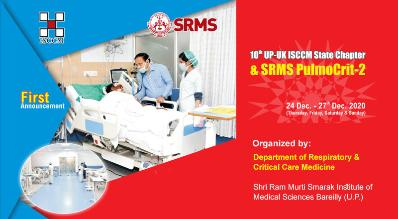 On behalf of the organizing committee, I cordially invite you to “10th UP-UK ISCCM State Chapter & SRMS PulmoCrit-2” to be held on 24th-27th December 2020 at SRMS IMS, Bareilly & Jim Corbett, Ram Nagar, Nainital