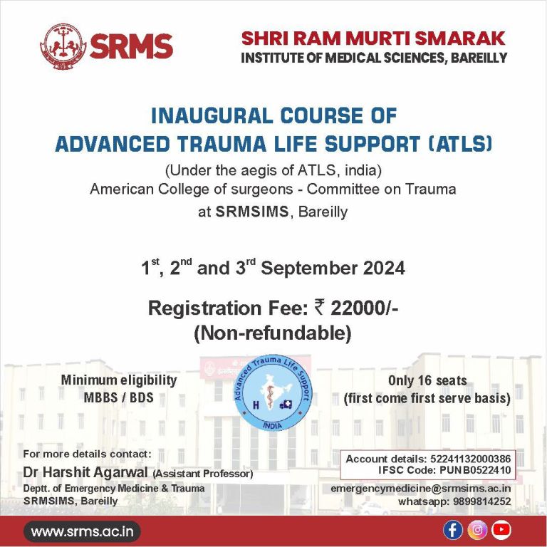 SRMS INSTITUTE OF MEDICAL SCIENCES ANNOUNCES THE INAUGURAL ATLS COURSE FROM SEPTEMBER 1-3, 2024!
