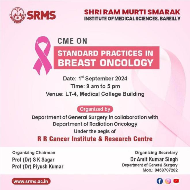 SRMS INSTITUTE OF MEDICAL SCIENCES TO HOST CME ON �STANDARD PRACTICES IN BREAST ONCOLOGY’ ON SEPTEMBER 1, 2024