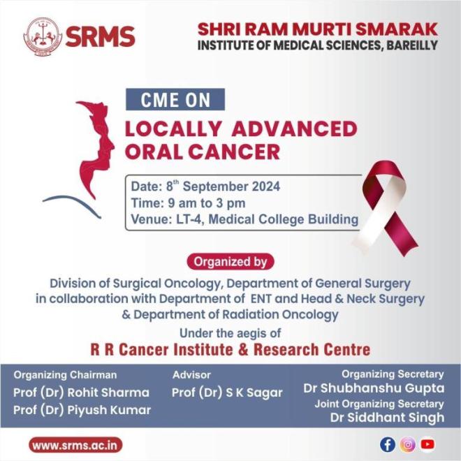 Shri Ram Murti Smarak Institute of Medical Sciences (SRMS IMS), Bareilly is going to conduct a CME on �Locally Advanced Oral Cancer’ on...